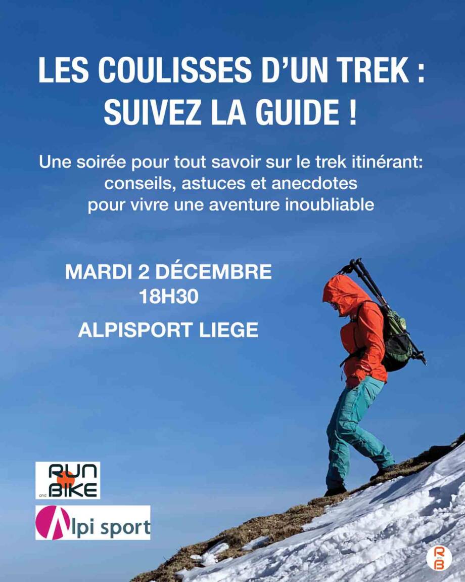 Virginie, guide en montagne (Diplôme d’État d’Alpinisme AMM – France), vous invite à une soirée conviviale pour partager les coulisses d’un trek : ses expériences, ses bons plans, ses galères et surtout ses astuces pour vivre l’aventure en toute sécurité.